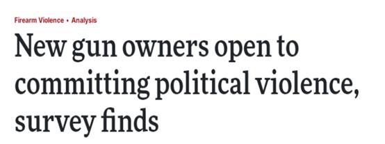 "Recent gun buyers and those who almost always carry guns are more likely to view political violence as justified and to be more willing to engage in it, to kill for political ends, and to form violent groups," the study notes.